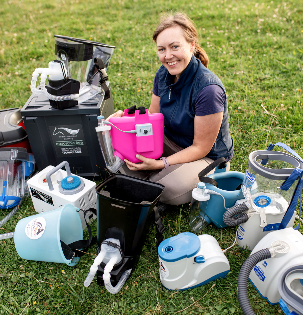 Soweit bekannt hat kein anderer Anbieter in Deutschland so viele Mietgeräte (Pferdeinhalatoren) von allen gängigen Herstellern (Flexineb E3, Nebutec SaHoMa 2, Hippomed / Kerbl Air One Flex, Hartwig (privat und free), Pegasalt). Nutzen Sie diese große Erfahrung und das breite Spektrum an Mietgeräten um Ihr Pferd optimal zu therapieren.